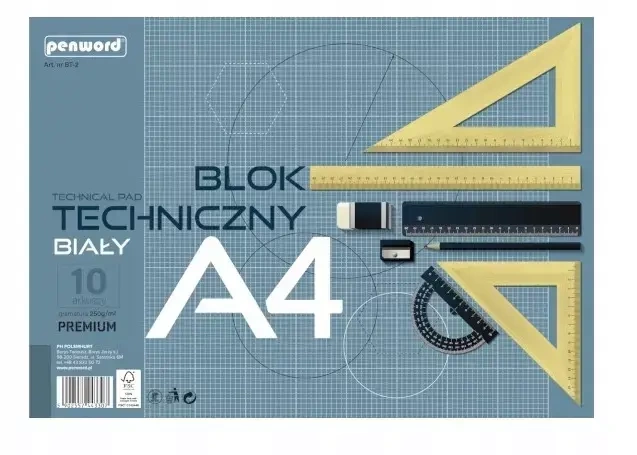 Blok techniczny A4 Premium biały 250g 10 arkuszy - Penword