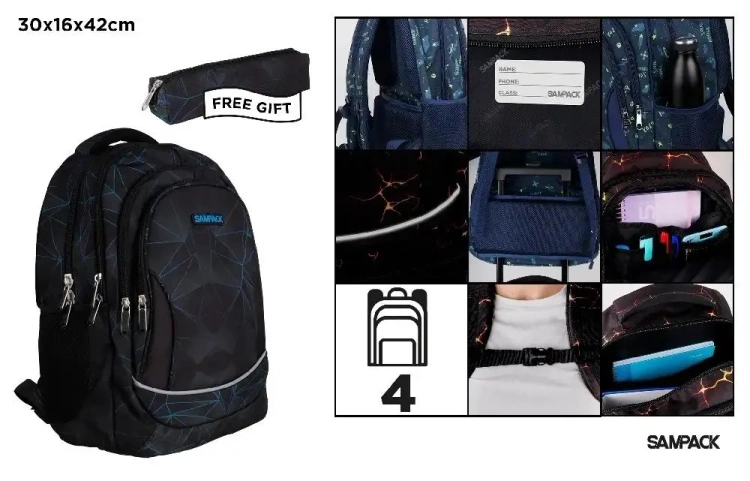 Plecak czterokomorowy 30x16x42cm + piórnik - MP Main Paper