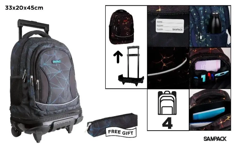 Plecak ze stelażem i kółkami 4 komory + piórnik - MP Main Paper