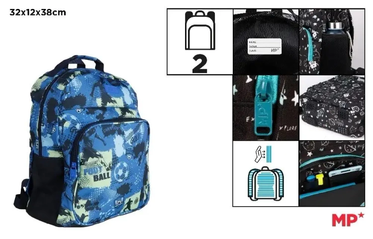 Plecak dwukomorowy Football niebieski 32x12x38cm - MP Main Paper