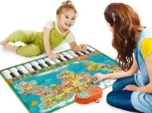Mata muzyczna Mapa : 90 x 70 cm, uczy literek, odgłosy zwierząt, 26 odgłosów zwierząt, pianino, 8 dźwięków instrumentów do wyboru, 10 melodii, regulacja głośności. Zabawka z głosem w jęz. angielskim. Opakowanie rozmiar: 33 x 8 x 33 cm