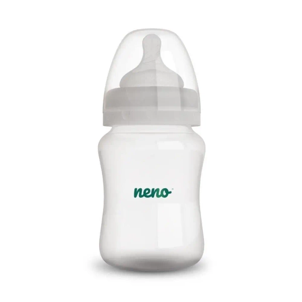 Bezpieczna butelka do karmienia niemowląt Neno Bottle 150 ml może być wykorzystana do karmienia dzieci już od ich pierwszych dni. Smoczek i butelka są bezpieczne dla noworodków. Pojemność butelki: 150 ml