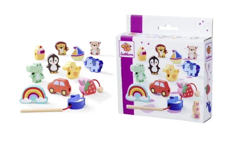Z grą Eichhorn Threading Game dzieci w wieku od 3 lat odkrywają świat w zabawny sposób! Ten czarujący zestaw 13 starannie wykonanych drewnianych figurek zaprasza do zabawy w nawlekanie. Niezależnie od tego, czy to tęcza, truskawka, czy lew – kolorowe i przyjazne dzieciom...