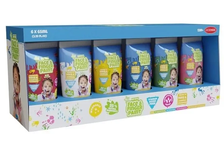 Farby są bezpieczne dla dzieci już od 12. miesiąca życia wykonane w 95% ze składników pochodzenia naturalnego i przebadane zgodnie z normami dotyczącymi kosmetyków i zabawek. Nie zawierają tlenku tytanu ani parabenów, są łatwe do zmycia wodą i nie powodują podrażnień.