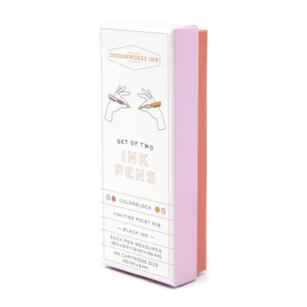 Każdy zestaw zawiera dwa długopisy wypełnione głębokim czarnym atramentem i ozdobionymi żywymi, kontrastującymi kolorami z matowym wykończeniem.