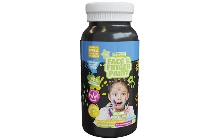 Bezpieczna, naturalna i wielofunkcyjna ta czarna farba 2w1 doskonale nadaje się zarówno do malowania palcami, jak i do twarzy. Stworzona z myślą o najmłodszych, zawiera aż 95% składników pochodzenia naturalnego i nie zawiera tlenku tytanu. Produkt został przetestowany zgodnie z normami dla kosmetyków i zabawek, co czyni go idealnym wyborem dla dzieci już od 12 miesiąca życia.