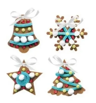 Zestaw kreatywny, dzięki któremu można stworzyć świąteczne pierniczki z filcu, do powieszenia na choince lub w innym, dowolnym miejscu.