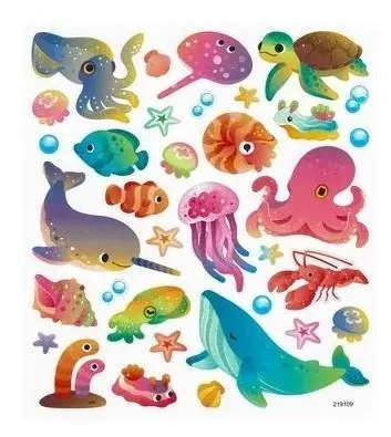 To zestaw składający się z 34 kreatywnych naklejek papierowych, które przedstawiają różne zwierzęta morskie. Wszystkie naklejki są umieszczone na jednym arkuszu, który ma wymiary 15 x 17 cm. Te kolorowe i ekscytujące naklejki to doskonały sposób, aby dzieci nauczyły się więcej o mieszkańcach oceanu i bawiły się przy tym!