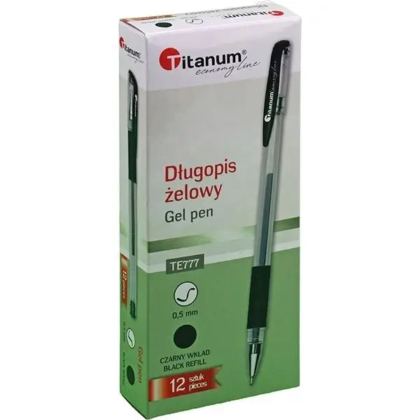 Długopis żelowy 0,5mm czarny (12szt) - Titanum