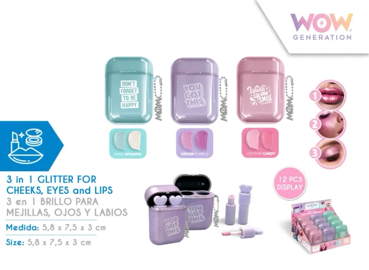 Błyszczyk 3w1 do ust oczu policzków brokatowy WoW Generation WOW00133 mix wzorów - Kids Euroswan