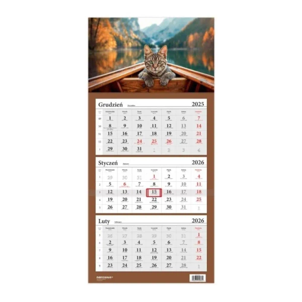 Kalendarz 2026 trójdzielny Lux Kot w łódce HELMA