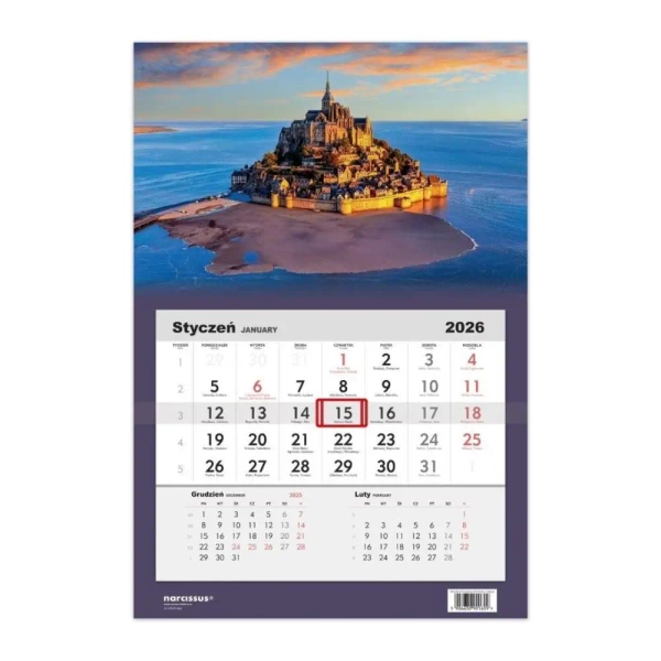 Kalendarz 2026 Jednodzielny Wzgórze Świętego Michała, Francja