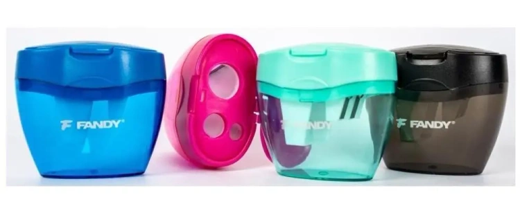 Plastikowa temperówka z pojemnikiem na ścinki i wieczkiem, do zacinania cienkich (8 mm), grubych (11 mm) i super grubych (16 mm) kredek i ołówków, miks kolorów, 12 sztuk w paczce.