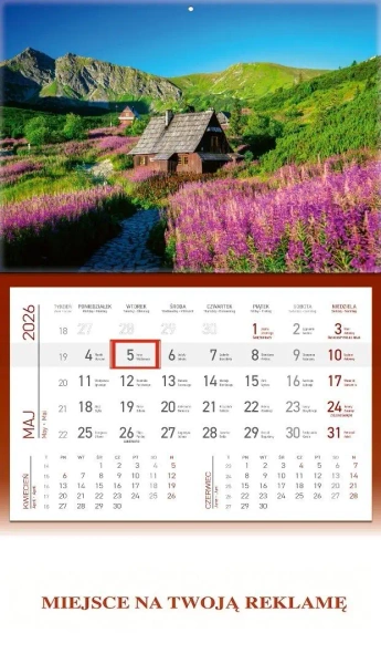 Możliwość wykonania nadruku reklamowego na dole kalendarza.