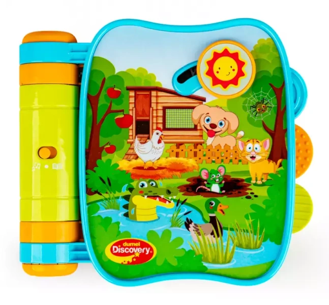 O zwierzątkach rymuje i maluszki dźwiękami czaruje! Kolorowa książeczka zapozna bobasa ze zwierzakami, poprzez piękne, kolorowe obrazki, wesołe wierszyki i zwierzęce odgłosy. Kryje ona w sobie dwa tryby zabawy, a za ich aktywowanie odpowiada przełącznik, znajdujący się na grzbiecie książki. Pierwszy tryb, to tryb dźwiękowy, w którym, poza odgłosami zwierzątek, maluszek może posłuchać piosenek śpiewanych przez zwierzaki. W drugim trybie, językowym, na najmłodszych czekają piosenki w języku polskim i rymowanki. Aby uruchomić powyższe funkcje, należy, zależnie od strony, przesunąć, przekręcić lub nacisnąć wystający, aktywny element. Na zewnętrznej stronie książeczki znajdują się kolorowe znaczniki z wypustkami, które ułatwią maluchom obracanie stron.