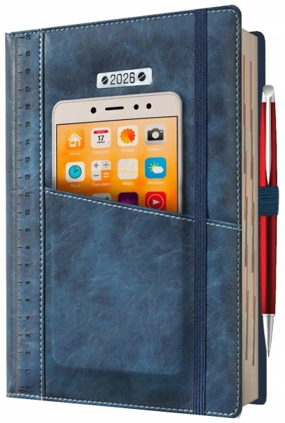 KALENDARZ KSIĄŻKOWY A5 DZIENNY 2026 KIESZONKA GUMKA NA DŁUGOPIS