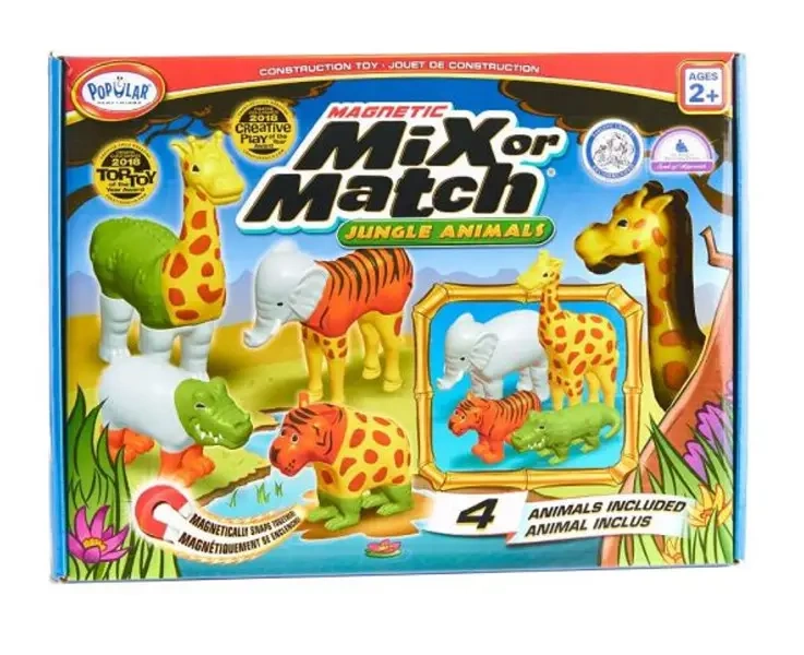 Magnetyczna zabawa dla najmłodszych: Zbuduj cztery dołączone do zestawu zwierzęta z silnym