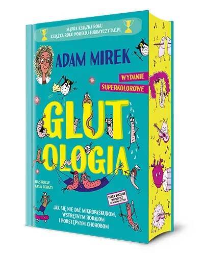 „Glutologia. Jak się nie dać mikropaskudom, wstrętnym robalom i podstępnym chorobom”, książka kochana przez małych, nagradzana przez dużych (Mądra Książka Roku 2024 – Nagroda Społeczności Akademickiej UJ, Książka Roku 2024 w kategorii literatury dziecięcej w plebiscycie portalu Lubimy Czytać, Bestseller Empiku 2024 w kategorii Literatura polska dla dzieci), powraca w kolorowym wydaniu!
