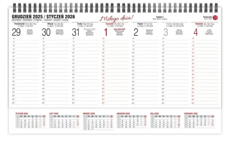 Kalendarz 2026 biurkowy tygodniowy poprzeczny - Pan Kalendarzyk