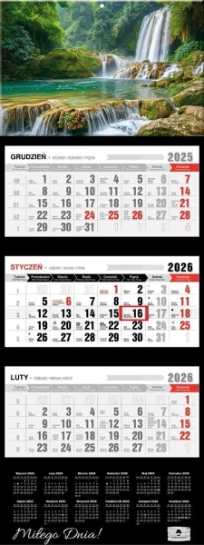Kalendarz 2026 trójdzielny premium wodospad - Pan Kalendarzyk