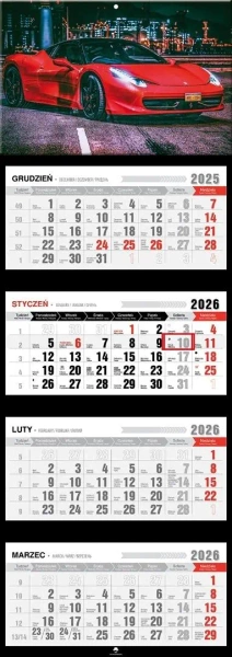 Kalendarz 2026 czterodzieny premium lux car - Pan Kalendarzyk