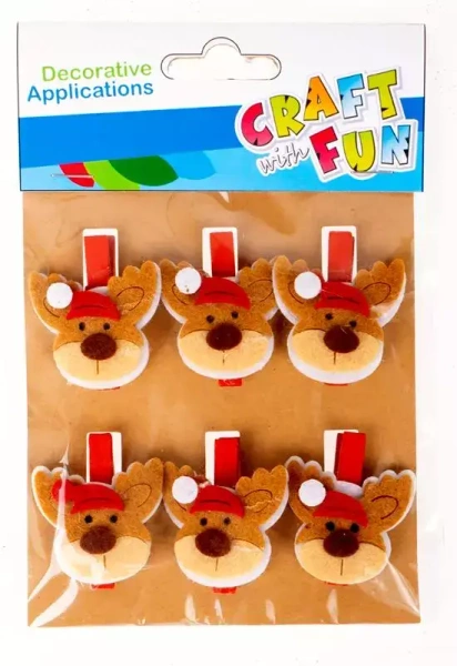 Zawartość opakowania: 6 sztuk 4.0 cm spinaczy z filcowymi reniferami.