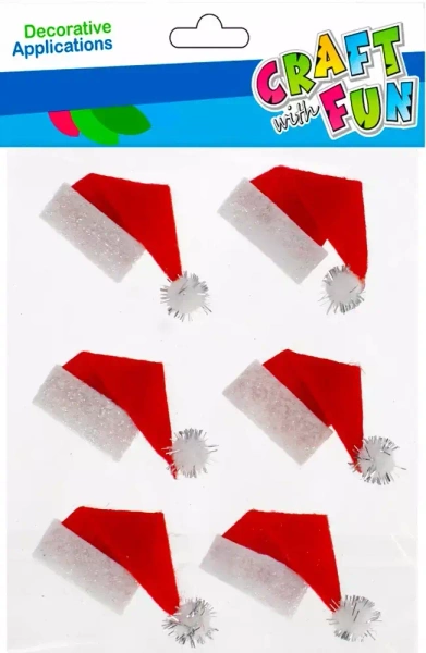 Wystarczy niewielki dodatek, by dodać twoim kartkom okolicznościowym, prezentom czy pokojowi dziecięcemu niepowtarzalnego, świątecznego charakteru. Zaprojektuj brakuje Ozdoby z serii CRAFT WITH FUN - kolorowe, filcowe czapeczki Mikołaja. Opakowanie obejmuje 6 sztuk dekoracyjnych elementów.