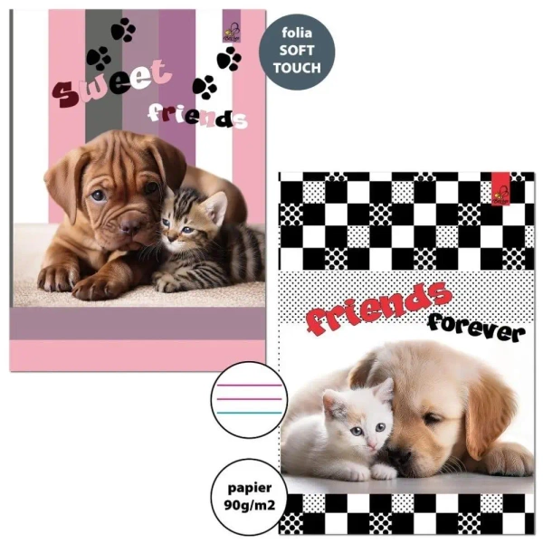 Zeszyt A4/32K 3-linie kolor 90g Psy Koty (6szt) - Bee-bee