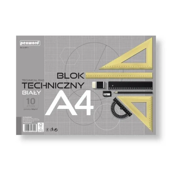 Blok techniczny A4 Premium biały 160g 10 arkuszy - Penword