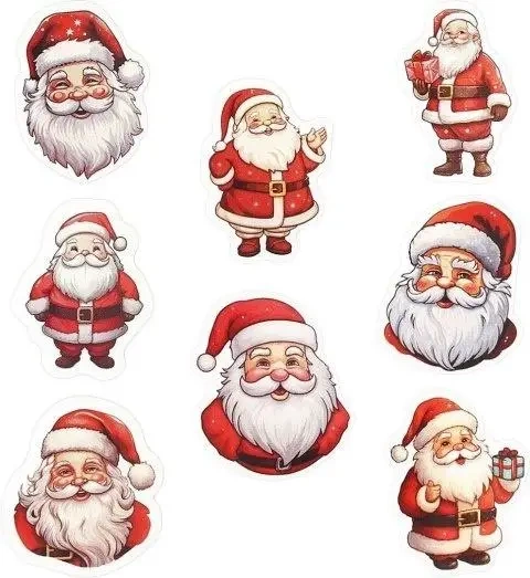 Naklejki papierowe na taśmie mix rozmiarów 8 wzorów Boże Narodzenie Mikołaj 500szt.