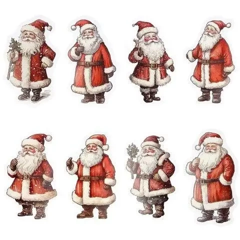 Naklejki papierowe na taśmie mix rozmiarów 8 wzorów Boże Narodzenie Mikołaje 250szt.