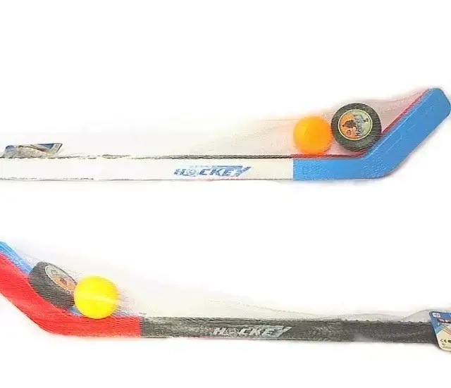 W skład zestawu do mini hokeja wchodzą kij, krążek i piłka.