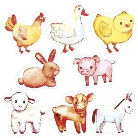 Naklejki papierowe na taśmie 8 wzorów mix rozmiarów zwierzęta gospodarskie 500szt.