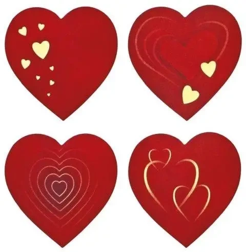 Naklejki papierowe na taśmie 4 wzory serca czerwone 25x25mm 500szt.