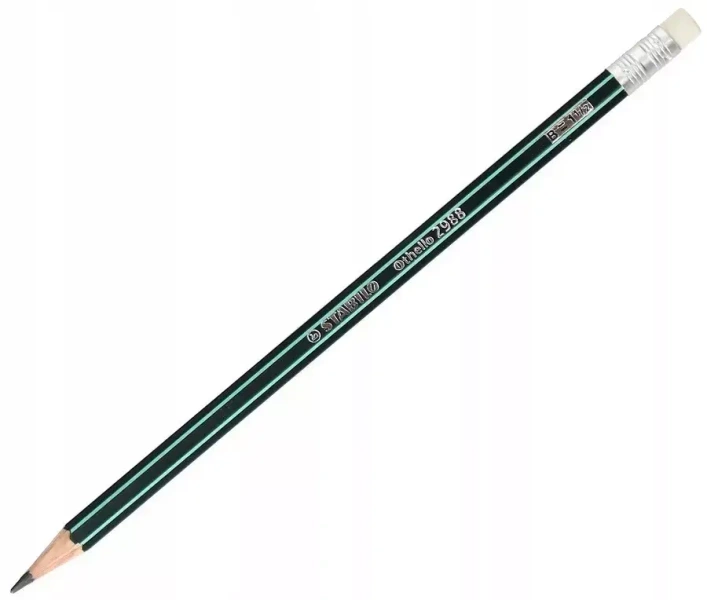 STABILO Othello - popularny ołówek techniczny z gumką dostępny w 3 twardościach. Idealny dla artystów oraz amatorów, uczniów, studentów i wszystkich, którzy potrzebują ołówka. Klejony grafit zwiększa jego odporność na złamania. Wykonany z ogromną starannością i dbałością o szczegóły. Pokryty gładkim lakierem, z charakterystycznymi dla STABILO jasnymi pasami. Idealny do pisania, rysowania i cieniowania. Twardość B.