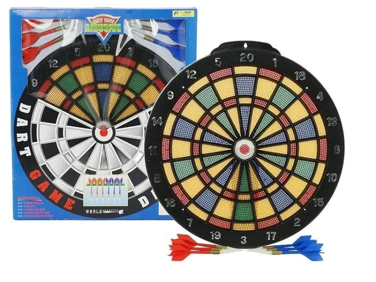 gra rzutki, tarcza plastikowa 35,3cm, 6 rzutek + wymienne końcówki, 41,5x35,5x2,5cm W/B