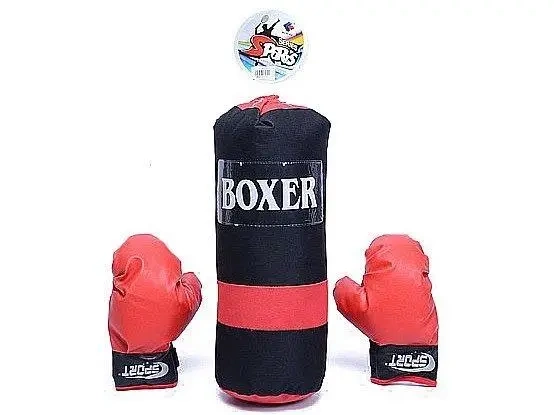zestaw bokserski, rękawice i worek; 41x26x23cm, siatka