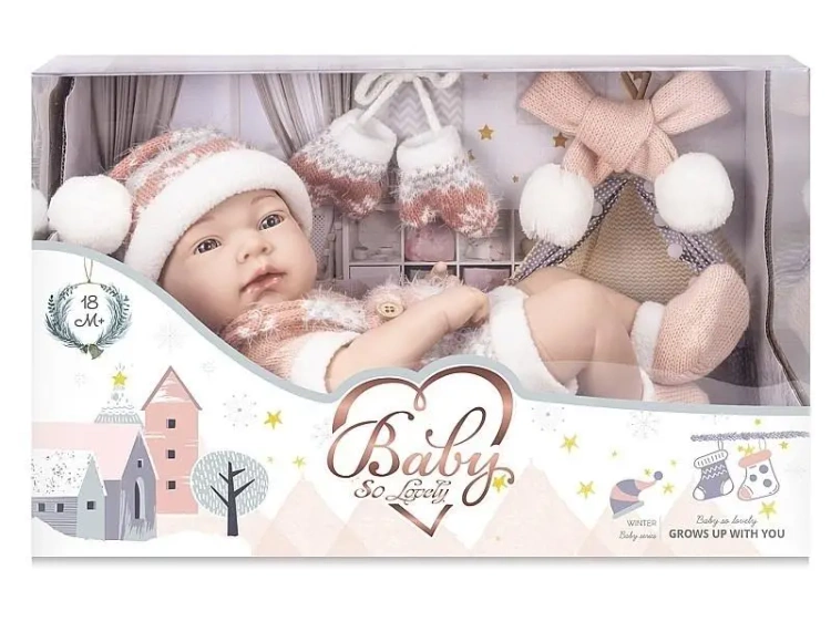 lalka bobas 38cm, w zimowym ubranku, realistyczna buzia; 40x17x12cm, W/B