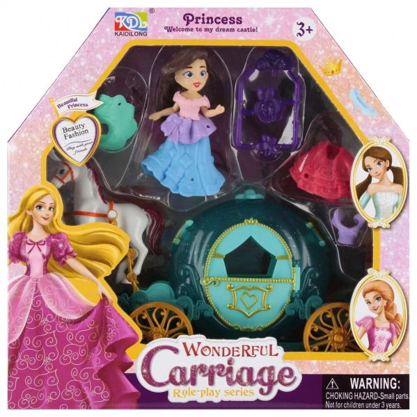 Zalety produktu rozwija kreatywność dziecka, zabawa lalką przeniesie dziecko w świat mody. Lalka z akcesoriami to wspaniały zestaw. Lalka z dodatkami pozwoli Twojemu dziecku przenieść się w świat lalek wzorowanych na styl lalek Barbie. W jednym opakowaniu mała laleczka z akcesoriami tj kareta z koniem. Zawartość zestawu Lalka 8 cm Księżniczka, Kareta z Koniem, dodatkowa sukienka. Całość wykonana z plastiku. Wymiary/waga/baterie wymiary produktu cm lalka 8 cm, kareta z koniem dł. x wys. x gł. cm 17x13x10, wymiary opakowania dł. x wys. x gł. cm 21x21x7, waga produktu bez opakowania kg 0,07 kg, waga produktu w opakowaniu kg 0,19 kg, nie wymaga zasilania bateriami. Produkt przeznaczony dla dzieci w wieku 3 . Pakowany w kartonik z okienkiem. W kartonie zbiorczym 96 szt. /p br / br / DANE GPSR br / Euro- Trade Sp. Z o.o. Sp.K. br / Władysława Łokietka 155 31-263 Kraków br / 48126144200 br / biuro euro-trade.pl CN 9503002190 br / Ostrzeżenia Nieodpowiednie dla dzieci w wieku poniżej 3 lat. Zawiera małe elementy lub istnieje możliwość oddzielenia małych elementów. Ryzyko połknięcia, udławienia, uduszenia. Przechowywać w miejscu niedostępnym dla dzieci poniżej 3 lat. Usunąć opakowanie przed przekazaniem dziecku zabawki. Opakowanie nie jest zabawką - chronić przed dziećmi. Prosimy zachować to opakowanie, gdyż zawiera ważne informacje. br /