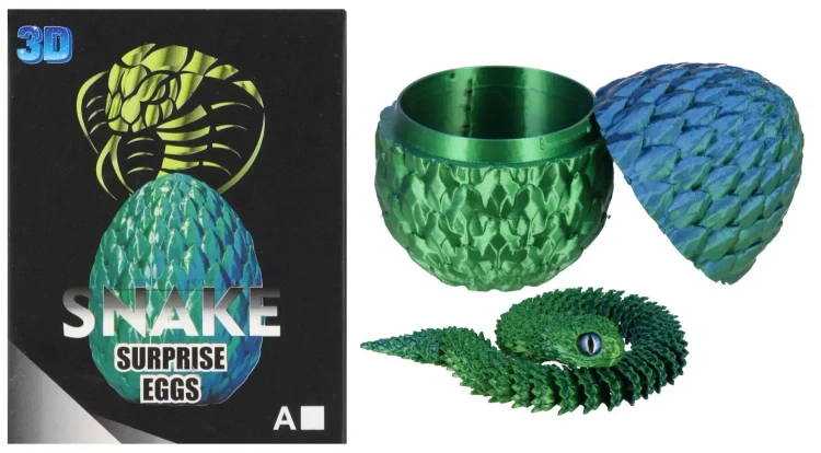 Zalety modna kształtna, designerski wąż w jajku, został tak skonstruowany że wygląda jak szkielet węża wijącej się we wszystkie strony. Zabawka 3D Zabawka schowana w metalicznym zielono-niebieskim zamykanym jajku, wykonany z tworzywa sztucznego. Wymiary/waga/baterie wymiary produktu dł. x wys. x gł. cm 6x8x6, wymiary opakowania dł. x wys. x gł. cm 6x8x6, waga produktu bez opakowania kg 0,03 kg, waga produktu w opakowania kg 0,04 kg, nie wymaga zasilania bateriami. Zabawka przeznaczona dla dzieci w wieku 3 . Pakowana w kartonik. W kartonie zbiorczym po 240 szt. DANE GPSR br / Euro- Trade Sp. Z o.o. Sp.K. br / Władysława Łokietka 155 31-263 Kraków br / 48126144200 br / biuro euro-trade.pl