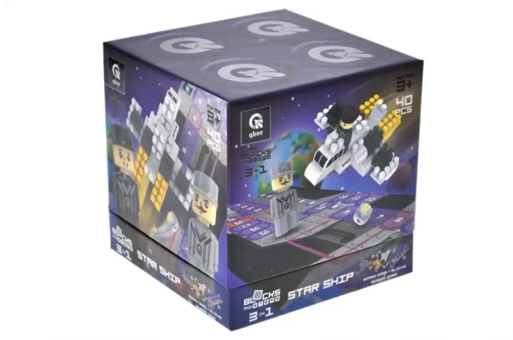 Konstruktor Block&Steps: Statek Kosmiczny + gra planszowa i gra memory 3 w 1, 40 elementów QB300-105 qbee