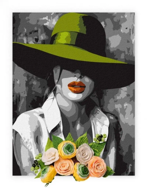 Malowanie po numerach IDEYKA 30x40cm z glinką Kobieta w kapeluszu
