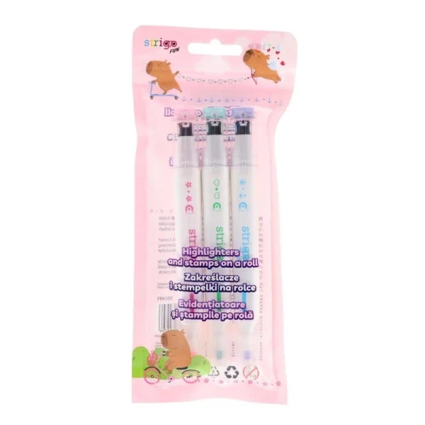 Zakreślacze i stempelki na rolce 2w1 3szt - Strigo