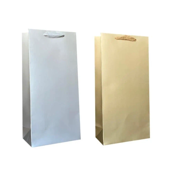Elegancka papierowa torebka prezentowa na wina (dwie butelki) wykonana z grubszego papieru o gramaturze 210 g, co zapewnia jej większą trwałość i odporność na obciążenie. Wyposażona w elegancką tasiemkę, który zapewnia wygodny uchwyt i estetyczne wykończenie.