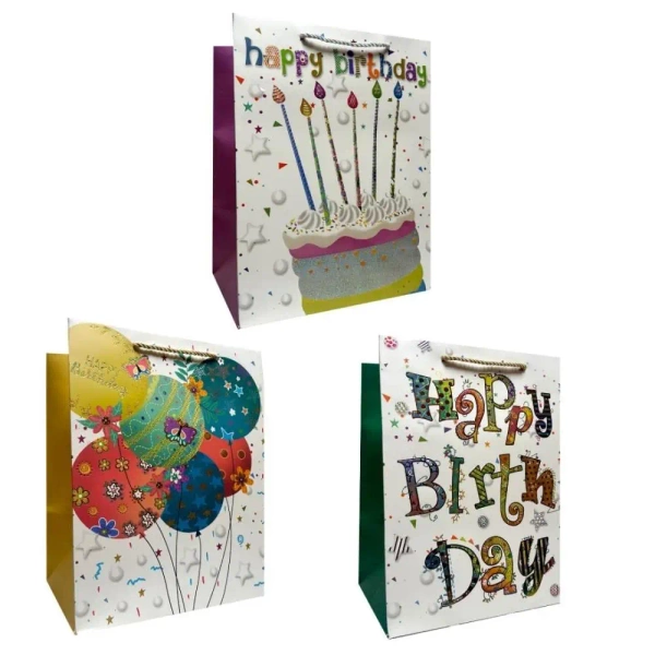Torebka prezentowa urodzinowa M szerokie dno mix - Ju-Piter