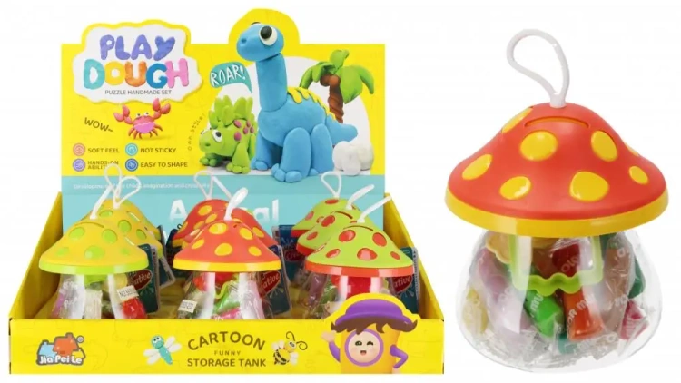 Zalety produktu Masa plastyczna z akcesoriami 12 cm mix to kreatywny zestaw, który zapewni dzieciom wiele godzin twórczej zabawy Dzięki różnorodnym akcesoriom maluchy mogą ugniatać, wałkować i formować ciasto plastyczne w fantazyjne kształty, rozwijając przy tym wyobraźnię i zdolności manualne. Zestaw zapakowany w uroczą skarbonkę Grzybek. Cechy produktu Bezpieczna zabawa masa wykonana z nietoksycznych materiałów, bezpiecznych dla dzieci. Kolorowy zestaw różne barwy masy pozwalają tworzyć ciekawe kompozycje i łączyć je ze sobą. Akcesoria w komplecie foremki i narzędzia ułatwiają lepienie i inspirują do nowych pomysłów. Kompaktowe opakowanie skarbonka Grzybek 12 cm idealne do zabrania w podróż lub do przyjaciół. Zabawa masą plastyczną rozwija kreatywność, koordynację ręka oko i zdolności artystyczne. To doskonały wybór dla małych odkrywców sztuki i świetny pomysł na wspólne, rodzinne spędzanie czasu. Wymiary/waga/baterie wymiary produktu dł. cm 12cm, wymiary opakowania-display dł. x wys. x gł. cm 35x13x32, waga produktu bez opakowania kg 0,14 kg, waga produktu w opakowaniu-displ ay A 6 kg 1,61 kg, nie wymaga zasilania bateriami. Przeznaczona dla dzieci w wieku 3 . Pakowana w display po 9szt. W kartonie zbiorczym po 108 szt.