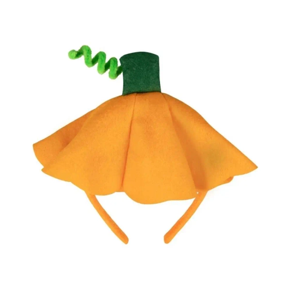 Wesoła i urocza opaska w kształcie kapelusza z dyni to idealny dodatek na jesienne uroczystości i przebierane imprezy. Wykonana z miękkiego materiału w pomarańczowym kolorze i ozdobiona zielonym ogonkiem, świetnie sprawdzi się zarówno u dzieci, jak i dorosłych.