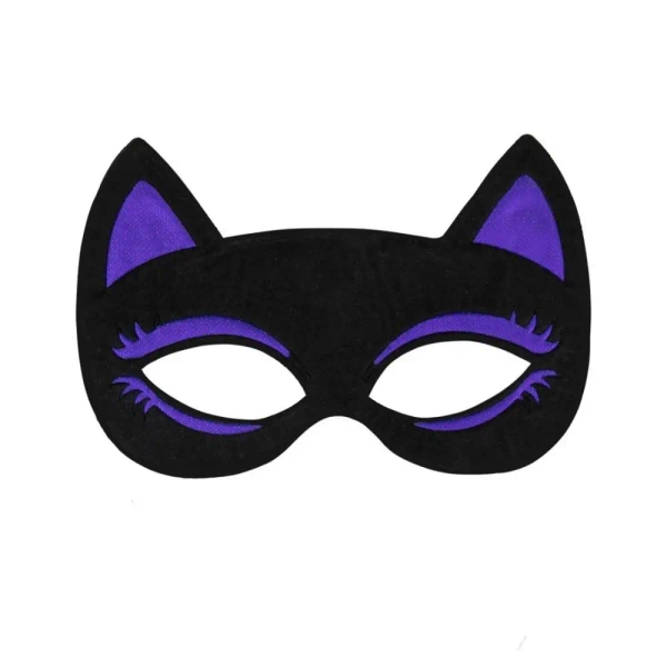 Zmysłowa, flokowana maska w kształcie kociego pyszczka z uszkami to doskonały dodatek do halloweenowego przebrania lub karnawałowej stylizacji. Miękka w dotyku, lekka i wygodna w noszeniu - sprawdzi się zarówno na imprezach halloweenowych jak i balach przebierańców.