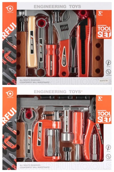 Zalety produktu nauka używania narzędzi warsztatowych, rozwijanie zdolności manualnych. Zestaw Narzędzi MEGA CREATIVE to podstawowy element wyposażenia w pracy małego majsterkowicza. Dzięki niemu każde dziecko nauczy się jak przykręcać śrubki czy poprawnie wbijać gwoździe Zestaw występuje w dwóch wzorach. Zawartość zestawu zestaw nr 1- kombinerki, śrubokręt, imadło, suwmiarka, 2 rodzaje kluczy, 4 x śrubki, deseczka do wkręcania, zestaw nr.2- młotek, klucz hydrauliczny, klucz zwykły, śrubokręt, nóż do tapet, 2 deseczki, 2 x śrubki, dodatkowa końcówka do śrubokręta, 2 nakrętki. Zabawka wykonana z plastiku. Wymiary/waga/baterie wymiary opakowania dł. x wys. x gł. cm 27x21x4, waga produktu bez opakowania kg 0,17 kg, waga produktu w opakowaniu kg 0,24 kg, nie wymaga zasilania bateriami. Zestaw przeznaczony dla dzieci w wieku 3 . Pakowany w kartonik z okienkiem. W kartonie zbiorczym po 72 szt.