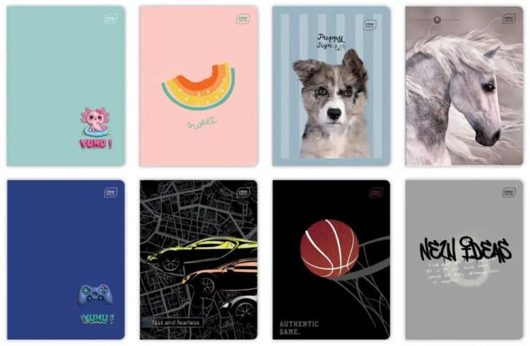 Format: A5. Liczba kartek: 32. Zadruk w kolorową kratkę. Zaokrąglone rogi. Okładka pokryta lakierem UV
